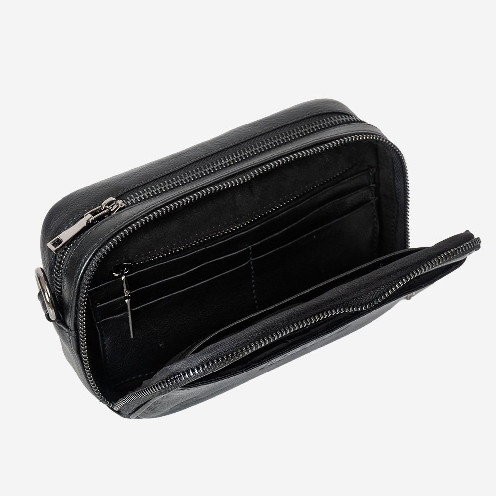 Esta crossbody está elaborada en piel de res genuina de alta calidad, combinada con un frente en piel de mantarraya, un material exótico reconocido por su resistencia, brillo natural y textura inconfundible. Esta combinación crea una pieza de alto impacto visual, ideal para quienes buscan distinción y exclusividad.