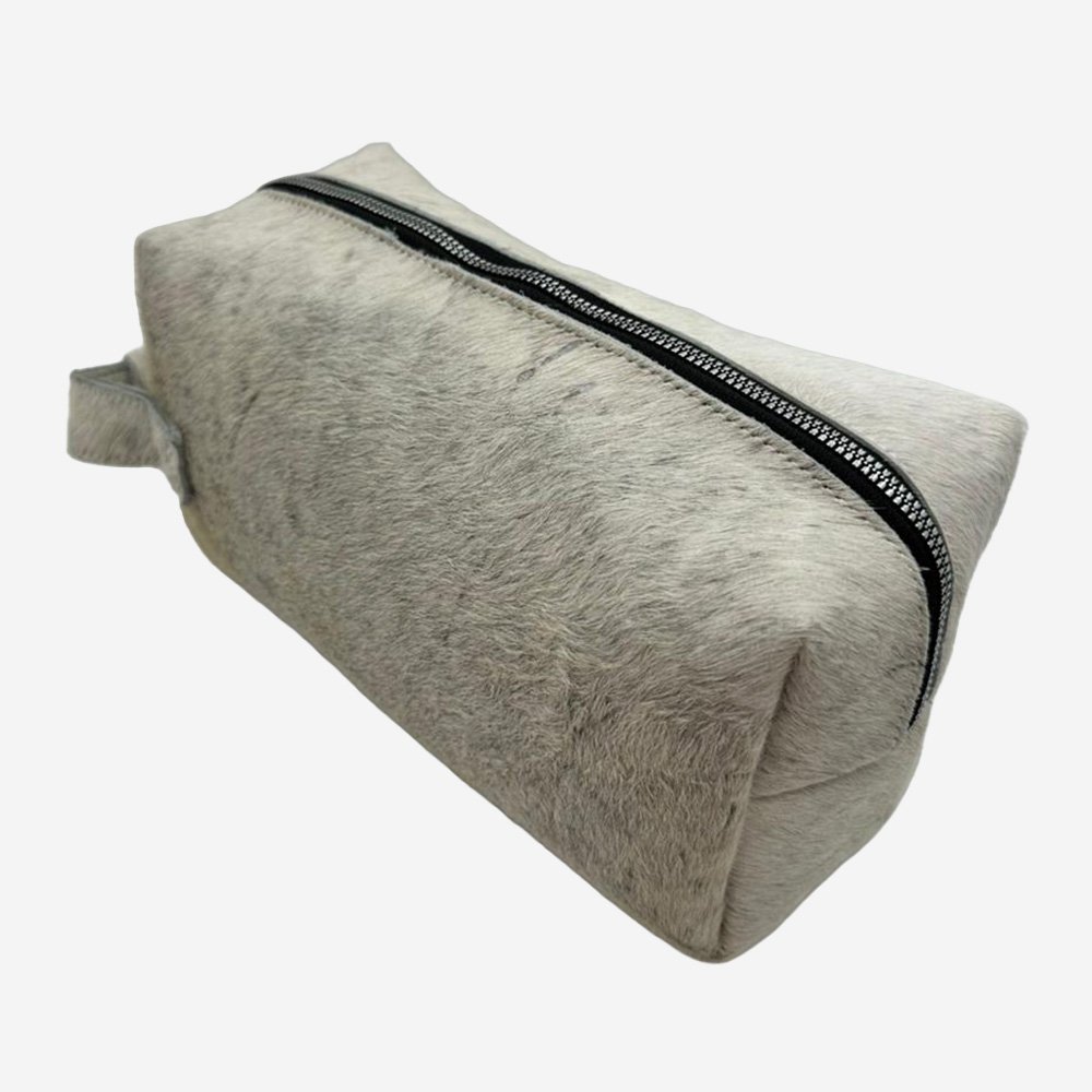 Este neceser de un solo compartimento destaca por su personalidad auténtica y carácter artesanal. Elaborado en pelo natural de res, cada pieza presenta variaciones únicas en textura y patrón, haciendo de cada neceser un accesorio irrepetible.