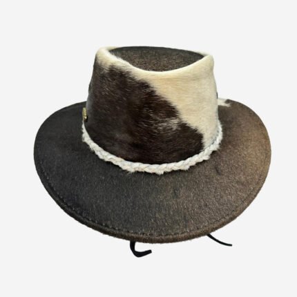 Este sombrero de lujo combina materiales nobles y diseño artesanal para ofrecer una pieza única que destaca por su carácter, elegancia y originalidad. Elaborado en pelo de res y piel de nobuk, presenta una textura sofisticada y una apariencia inconfundible que eleva cualquier atuendo.