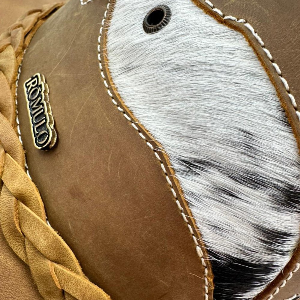 Este sombrero de lujo combina materiales nobles y diseño artesanal para ofrecer una pieza única que destaca por su carácter, elegancia y originalidad. Elaborado en pelo de res y piel de nobuk, presenta una textura sofisticada y una apariencia inconfundible que eleva cualquier atuendo.